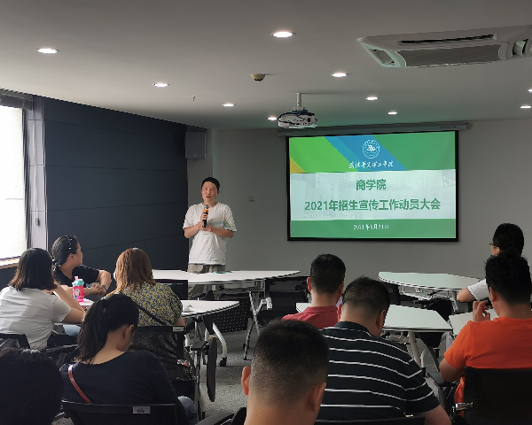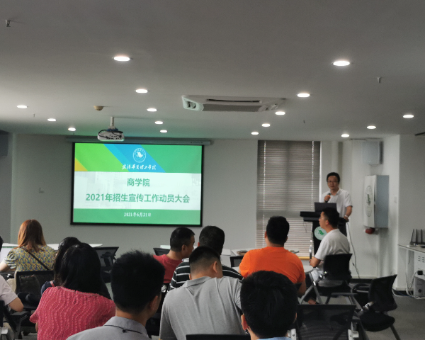 2021年6月21日,商学院于综合楼1401会议室召开了“2021年招生宣传工作动员大会”,会议由商学院党总支书记孙文胜主持,副院长潘连柏、学工办主任关宏达、教学办主任方旎雯以及全体负责招生宣传工作的教职工参加了此次会议。