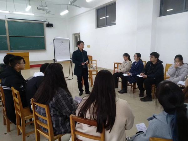 12月22日上午9点30到12点30,贺华文老师在教室3-410为商学院心理健康协会的部分成员和对“个人成长”有困惑的同学们进行了一次培训活动,本次活动以“认识,了解,体会个人成长”为主题。
