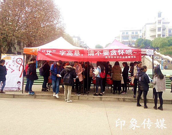 在第29个世界艾滋病日到来之际,商学院刘普林志愿服务队在一食堂门口进行摆点宣传“防艾”。为我校学生普及艾滋病知识,增加学生预防艾滋病的意识,远离艾滋病,进一步推动艾滋病防治工作在学校的全面开展。