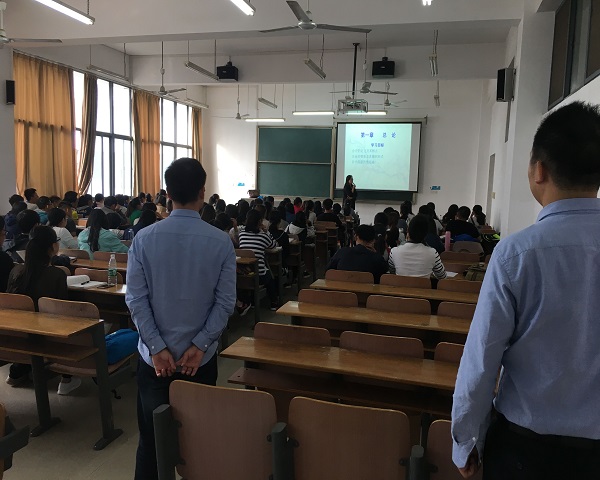 日前,经过一系列的迎新、军训、入学教育等活动的洗礼,10月10日,我院大一新生终于迎来了“开学第一课”。为确保教学工作顺利进行,党总支书记张平、党总支秘书徐双立、学工办主任马勇,以及各辅导员深入教学楼,检查任课教师到岗和学生上课出勤情况。
