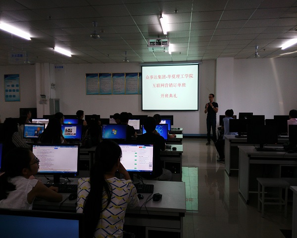 2016年9月18号下午2点,商学院实验中心511教室,“众事达集团-华夏理工学院”互联网营销订单班举行了简短而隆重的开班典礼,该订单班共吸纳了我校2013级电子商务、市场营销、工商管理3个专业的40名同学。