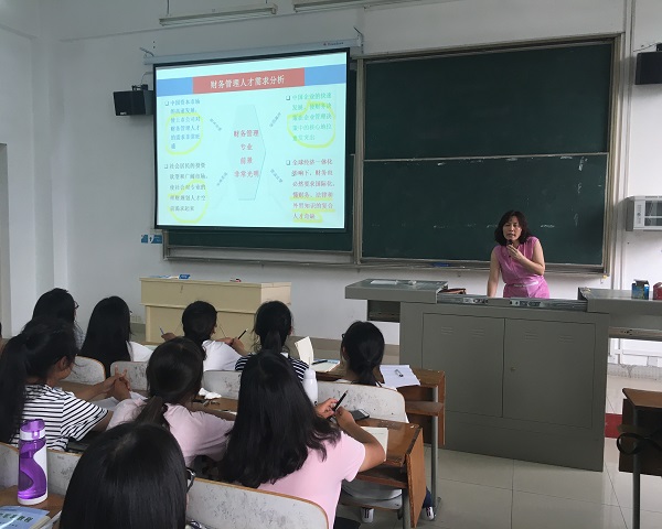 9月26日下午3点50分,商学院在2教507开展了财务管理专业的介绍讲座。由财务管理系的副主任严碧容老师主讲,系主任方明老师、陈雪梅老师、朱盈盈老师、张倩老师以及15级辅导员鲁煜霖老师和新生辅导员金亮老师参加。