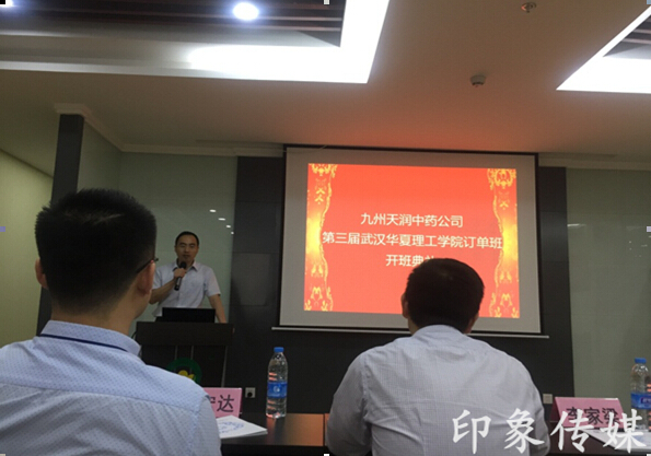 5月30日上午9:30,我院在东西湖九州天润中药发展公司金贵饮片基地举行第三届综合订单班开班典礼。九州天润中药发展公司人力资源总监贺华文、人资与行政部部长吴爱林、订单班班主任王俊友、校就业服务中心主任李家梁、商学院党总支书记张平、商学院副院长潘连柏、营销教研室贺慧惠,13级辅导员关宏达和22名订单班学员参加开班仪式。开班仪式由订单班班主任王俊友主持。