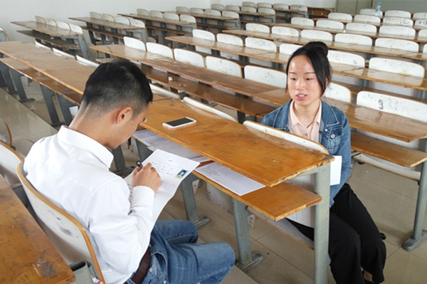 在面试过程中,大家都表现的镇定自若,面对考官的提问,能有条不紊的回答。据悉,考官会让学生们来一个自我介绍,会针对简历的内容提出相应的问题,会问你的求职定位以及你期望的工作地点等。对于面试,我们也随机问了几位同学,他们对自己的表现,还比较满意,没有很怯场,可以自如的回答考官的问题,也了解到订单班首先会对大家进行团队建设,培养大家的团队协作能力,会向大家介绍企业文化、企业业务以及订单班培训计划等。