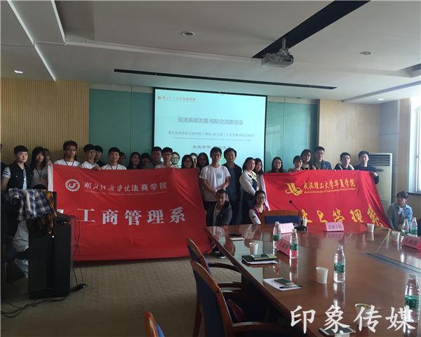 一路走进法商学院,流觞曲水,树木丛生,百草丰茂,威严而又透着人性化的气息,有学术氛围而又不失灵动与活力。随后在法商学院工管系学生会的带领下,双方进入会议室就坐,正式开始了校际交流座谈。在主持人的介绍下,会议进入正题。首先是由法商学院的指导老师金韬老师为此次校际交流做总结性发言。金老师肯定了校际交流活动的积极意义,并表示了对我系代表的欢迎。然后进入大会第二项,法商学院展示了他们为学生会做的宣传视频,展现了他们把优秀当作习惯的优良传统,并由工管系学生会林小慧主席初步介绍他们承办的各类活动,以及胡世豪副主席简单介绍各部门职能。接下来,他们播放了各个部门为自己做的ppt介绍,进一步加深对各个部门的了解。紧接着,经管系团学联的余闯主席也为对方简单介绍了团学联的基本组成,罗惠娟书记详细介绍了团口的工作。各部门代表也依次上台对各部门进行介绍。