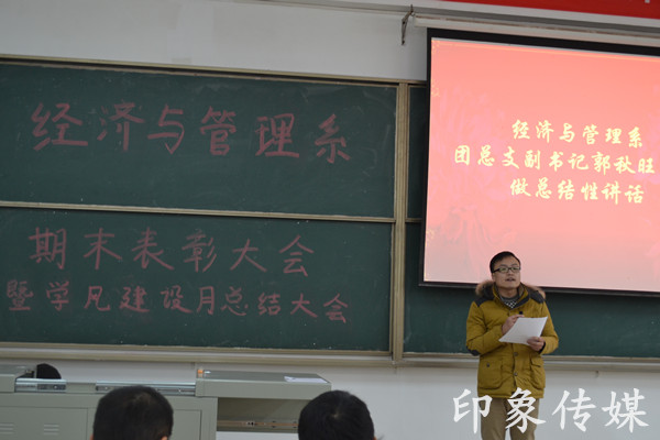 12月30日中午12:10,我系团学联在2-101举行期末表彰大会暨学风建设月总结大会。出席本次大会的有系团总支副书记郭秋旺老师、马江伟老师,辅导员鲁煜林、李洋、杨阳老师,以及各班的学生代表。