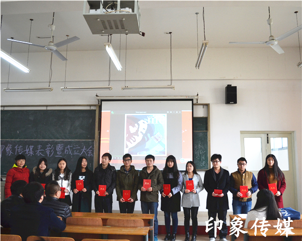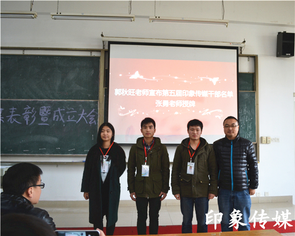 随后,郭定芳老师为上届总监及部长颁发聘书,郭秋旺老师宣布第五届印象传媒干部名单,张勇老师为之授牌。