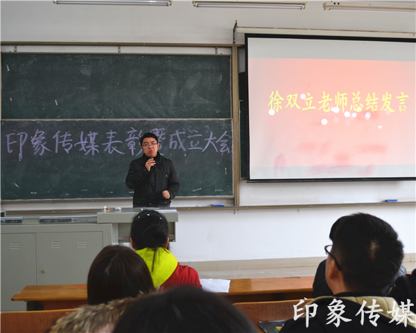 最后,徐双立老师进行了总结发言。他首先提出了三个方面的指导思想:第一,成员应明确责任,明白自己在做什么,为什么做,如何去做。应认真宣传,把印象各方面的面貌展现出来。第二,大家应注重执行力方面的建设,在执行力方面更上一层楼。每个人应各司其职,认真务实地做好每一件事。第三,执行力是建立在凝聚力的基础上的,一个团队若没有凝聚力,就如同一盘散沙。团队成员应紧密团结在总组织的周围,努力完成每一项任务。这样才能完善整个队伍的建设。