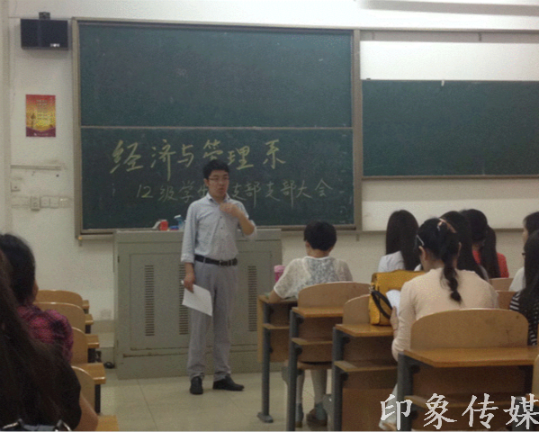 5月12日中午12点10分,经济与管理系12级学生党支部在2-101教室召开支部大会,接收预备党员。大会由系党总支秘书徐双立老师主持,12级学生党支部组织委员杨阳老师、宣传委员汪洋老师、辅导员郭秋旺老师及75名学生党员参加大会。