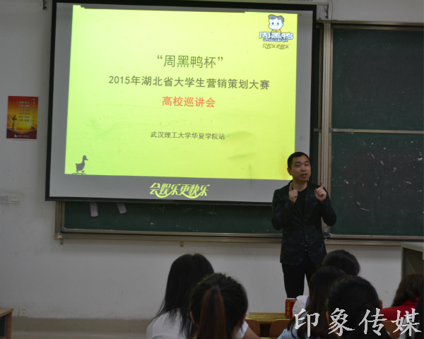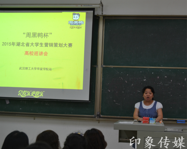 4月8日下午四点,经管系营销教研室邀请到湖北周黑鸭食品有限公司副总郝立晓先生,为我校参加湖北省“周黑鸭杯”校园营销策划挑战赛的师生作专场宣讲会。