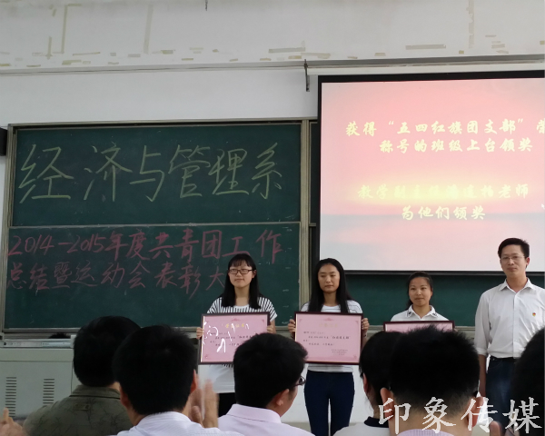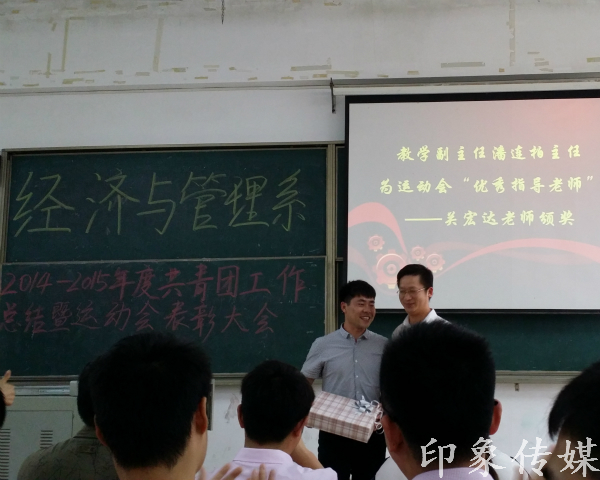 5月6日中午12:10,经济与管理系在教学楼2-101召开2014-2015年度共青团工作总结暨运动会表彰大会。出席此次大会的有系教学副主任潘连柏、张建明、党总支书记张平、教学行政办主任方旎雯、学工办主任胡春福、党总支秘书徐双立、团总支书记郭定芳、团总支副书记郭秋旺及各年级辅导员。我系各学生组织及优秀学生代表参加了会议。团总支副书记张勇老师担任大会主持人。