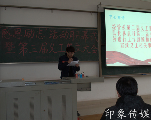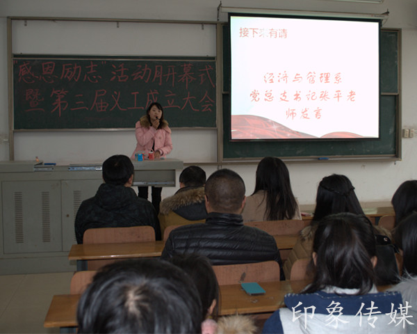 3月5日是雷锋纪念日也是中国青年志愿者日。为更好的奉献社会丰富校园文化,经济与管理系义工服务队“感恩励志”活动月开幕式暨第三届义工服务队成立大会在我院1-101教室举行。