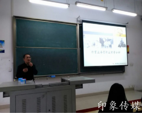 胡董事长以“外贸业务员职业前景分析”为主要内容,以外贸行业的发展前景为切入点,介绍了外贸业务员这个职业的优缺点,以及外贸业务员的日常工作内容等,最后他对学生们提出了外贸业务员的基本素质要求:要以勤奋为核心,注重培养自己的学习力、语言能力、交际能力、沟通能力以及韧性力。