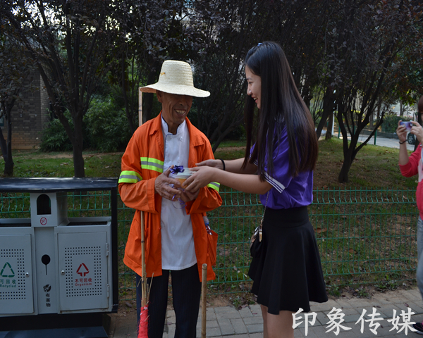 清晨7点30分,华夏学院图书馆口就集聚了刘普林志愿服务队的紫衫军们。远远望去,大家手中抬着的纸箱正是为环卫工人们准备好的水果,为了让环卫工人们吃到新鲜的水果,志愿者们6点30分就在青清水吧料理水果并将水果打包保鲜。除此之外,同学们还为环卫工人精心准备了来自华夏同学们对他们的温暖祝福。“平时就是靠这些环卫的叔叔阿姨辛苦的清扫,我们的马路才会这么的干净。”一位志愿者由衷的说道。
