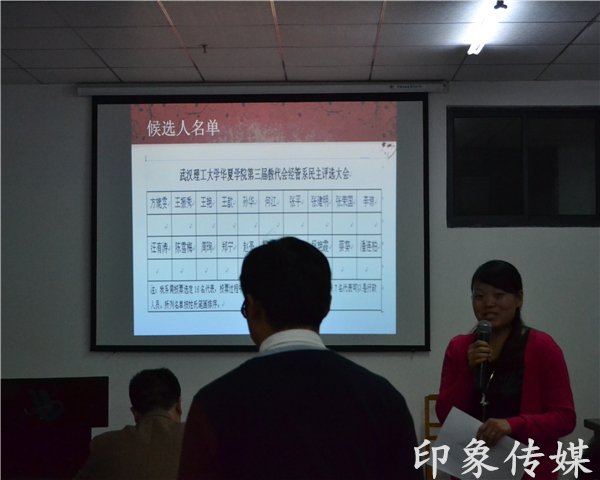 该选举活动由我系党总支书记张平老师主持,她指出,参与“两代会”候选人的选举,是大学教师了解党的发展路线的重要途径,也是人民当家作主的具体体现。老师们在投票选举时,应认真负责,积极行使自己的权力与义务,充分发挥自己选举的作用。