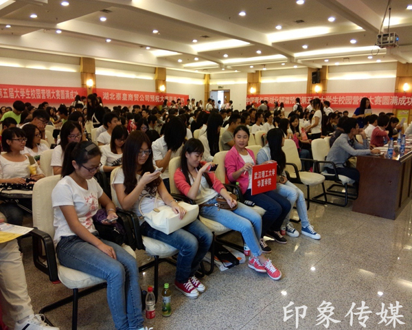 在这秋风送爽的日子里,我校终于迎来了长江商报第五届大学生校园营销大赛的正式开幕。10月12日下午14:00时,武汉30多所高校的代表聚集在中南民族大学宏伟的润良报告厅里。各大企业的骨干人员、训练有素的主持人以及气宇轩昂的同学们,都无不预示着此次比赛的专业与精彩。