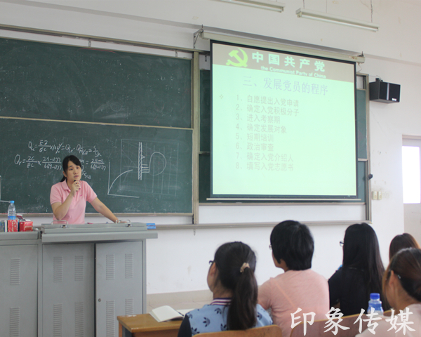 自改革以来,大学生在校期间入党,在人数方面有了一定限制,名额相对改革前大大减少,且对大学生党员质量要求变得更高、更严。如何推动学生对党团知识的认识,在近年,已成为高校老师努力的目标。我系13级辅导员何江老师就这一问题,给14级新生们进行了近一个小时的讲解。首先,成为入党积极分子是入党的第一步,然后,被确认为党的发展对象,经过一年的考察期,后被入党推荐人推为正式党员。在此期间,要经过党校和平时表现的考核,其中,政治思想觉悟也是一个重要因素。因此,她指出,作为大学生,应关心政治时事,提高自己的思想觉悟。最后,她强调,作为新生,应对自己的大学生活有个规划。大学作为全新的开始,付出的努力越多,才能为自己的未来创造更多可能。