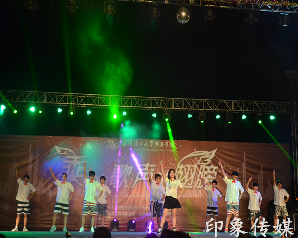 劲歌热舞的开场,引来无数掌声与尖叫;性感火辣的经管妹纸、活泼搞笑的土木男生、独具特色的民族舞蹈、活力四射热情满分的院拉丁舞队、幽默又引人深思的话剧,精彩不断,感动不停。吉他社深情的《空白格》,加上舞者优美的舞姿,心碎得欲罢不能;笛萧社的葫芦丝演奏,宜静宜动,脑海的画面随感官而变;街舞社团的动感,机械舞、爵士、街舞应接不暇,让人震撼;最夺人眼球的,莫过于动漫社的cosplay《英雄联盟》了,道具精美、称赞连连。外语系麻辣女教师莫亚萍老师的《saving all my love for you》你听见了吗?《时间都去哪儿了》,信息系也借歌声表达了对父母的感谢。此外,微博墙也是精彩不断,不少学生表示作为历届迎新工作者,现在终于有机会坐下来欣赏晚会了。也有通过微博表白,引来现场齐叫“在一起”。
