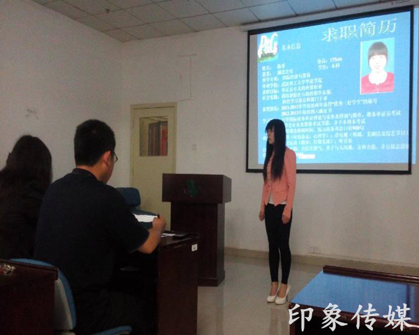 2014年5月15日12:30武汉理工大学华夏学院在大学生事务中心举办了一场别开生面的模拟求职面试比赛。六位求职者充满自信、洋溢着青春的气息与活力地在台上介绍自己。面对老师们的各种提问,他们一一作出精彩的解答。最终,营销1132班的潘婷脱颖而出,获得本次比赛的第一名,杨焌逸为第二名,其他选手也取得了不错的成绩。