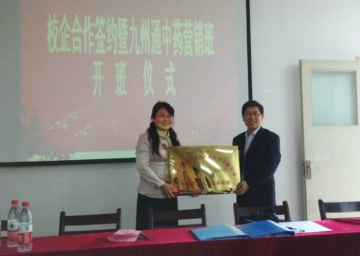 近年来,我系与九州通医药集团有着密切的合作关系,公司接纳多批学生进行专业实习,并数次参加校园招聘会,录用大批优秀毕业生入职。为进一步推进校企合作成果,经过前期的广泛动员、面试筛选,双方最终在市场营销专业药品营销方向择优录取20名同学成立九州通中药营销班。