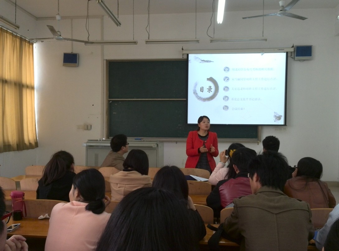 3月26日中午十二点十分,经济与管理系13级全体班主任在2教205召开了班主任工作例会。与会的有系党总支张平书记,学工办刘佳主任和13级所有辅导员。会议总结了本学期开学以来学长班主任取得的成绩和出现的问题,以及今后工作努力的方向。会议由学长班主任指导老师杨俊主持。
