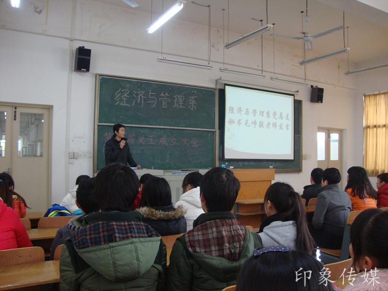 2012年12月18日,第二届经济与管理系义工成立大会在1-101举行,系党总支秘书毛峥毅、系团总支书记李文超老师以及各年级辅导员、团学联代表以及各班级代表参加此次活动。