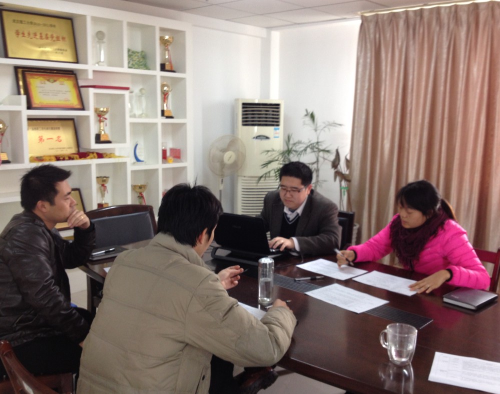 12月3日上午10点,经济与管理系在819会议室组织开展12-13学年辅导员考核评分工作,系党总支书记张平、学工办主任刘佳、总支秘书毛峥毅和辅导员代表李文超、关宏达五位老师组成评分小组对上学年全体在岗辅导员进行考核评分。