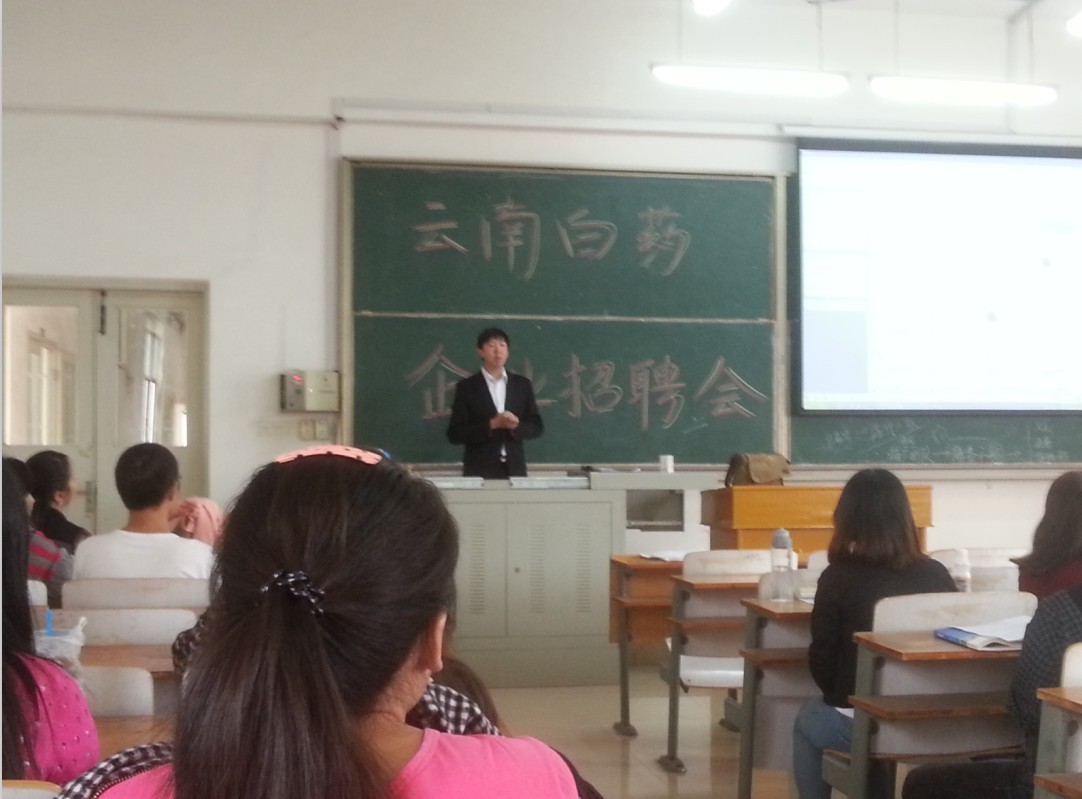 2013年9月26日,云南白药集团旗下逸清堂现代商务公司在我院教学楼3教401进行了招聘宣讲会,旨在挖掘优秀销售人才,并为广大应届毕业生以及在校生提供全职和兼职平台,经管系市场营销专业的学生在教研室贺慧惠老师的组织下积极参加招聘宣讲会。
