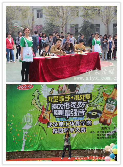 本次的活动由杭州娃哈哈集团主办,武汉理工大学华夏学院经济管理系营销教研室及系团学联共同承办。经管系营销教研室老师及团学联代表担任本次比赛的评委。此比赛奖励丰厚,每场比赛两名“城市最强音”将晋级省举办的城市之间的PK决赛,更有机会赢得丰厚大奖。我校爱好音乐者都积极踊跃报名参加,一展歌喉。那些或高亢、或婉转、或激昂、或细腻的歌声回荡在青春的校园。