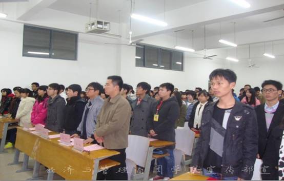“欢迎大家来到经济与管理系团校培训结业仪式现场”,经济与管理系团校培训结业仪式伴随着主持人的欢迎词顺利开幕,11月22日中午12点10分,经济与管理系团校培训结业仪式在三教110举行。经济与管理系团总支副书记李文超老师、经济与管理系团总支副书记孙华老师以及经管系12级辅导员出席了本次会议。
