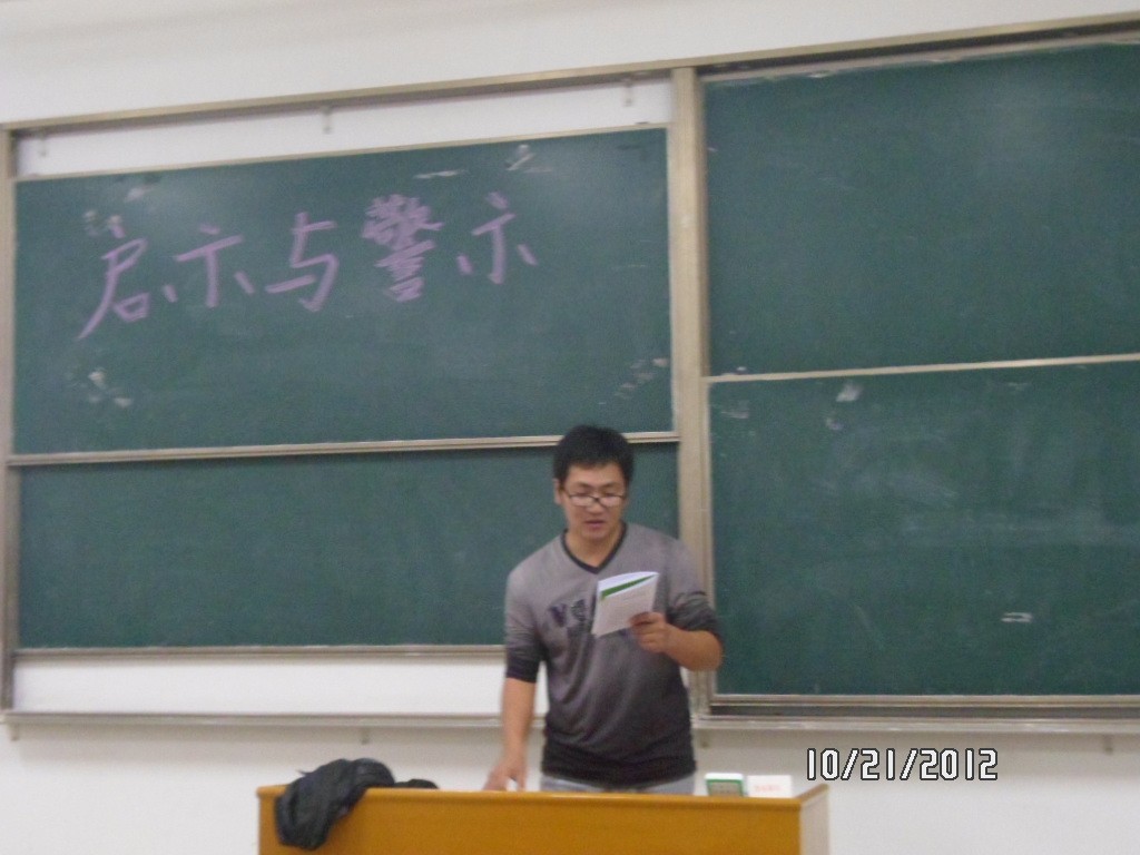 10月21日,经济与管理系大一、大二、大三三个年级分别在3教407、1教501、3教401进行晚点名。本次晚点名主要以《启示与警示》为主题展开。