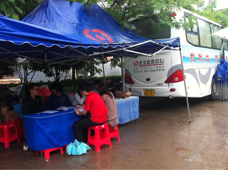 2012年5月14日,武汉献血中心的采血车来到我院,经济与管理系青年志愿者协会配合献血中心在我院进行了为期一天的献血采集工作,从总体的志愿服务和表单的自主填写来看,我院学子无偿献血行为是积极主动的,赢得了献血中心的工作人员一致的好评。