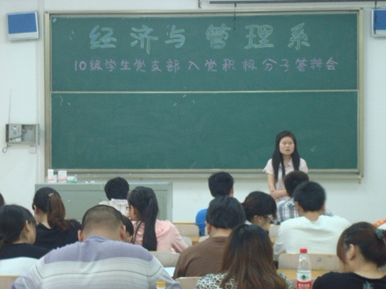 2012年5月8日中午12点分,经济与管理系2010级学生党支部在3-102、3-103、3-104三个教室同时举行了入党积极分子答辩活动。此次活动是我系2010级党支部的第三批入党积极分子答辩,参加此次答辩活动的入党积极分子共有48名。