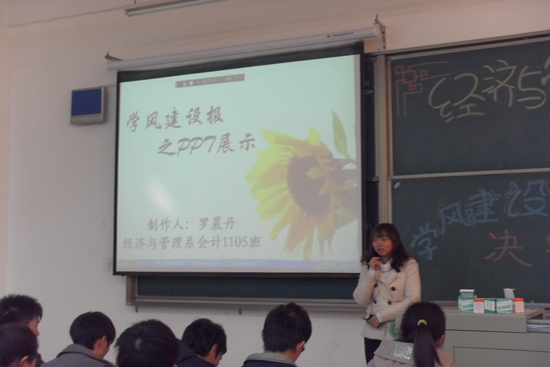为树立良好的“校风,班风,学风”,全面提高学生综合素质和思想道德水平,营造良好的学习氛围,让学生自主学习,积极学习。经济与管理系团学联宣传部和办公室共同主办了学风建设报设计大赛,并于2011年12月2日在2教107如期举行。