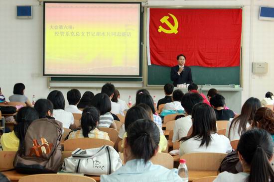 5月31日中午12:10,经济与管理系09级预备党员宣誓仪式在2—207隆重举行。参加仪式的有经济与管理系党总支胡水兵书记,党支部委员范路、马江伟以及09级预备党员和第三批发展对象,宣誓仪式由党支部何江书记担任主持。