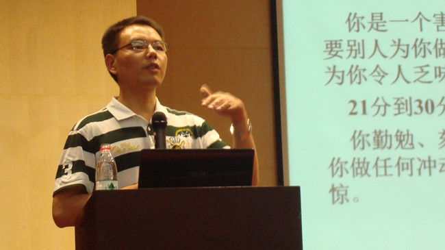 6点40分,同学们纷纷进场,整个过程井然有序,整个会场座无虚席。章劲元教授首先为我们介绍了人格的结构,解读了典型的四种人格类型:胆汁质、多血质、黏液质和抑郁质,由此展开,将理智型、情绪性、意志型的内涵也用自己幽默的语言娓娓道来。不仅为我们讲解了中方古老的以五行来测试人格的方法,还涉及到了西方的“星座学说测性格”。同时章教授还提出从我们个体的心理倾向划分,可分为外向型和内向型两大类,并结合真实的事例和自己的亲身感受对两种性格的优缺点进行分析,提出了宝贵的意见。深入浅出的讲解,温文尔雅的话语给同学们留下了深刻的印象。
