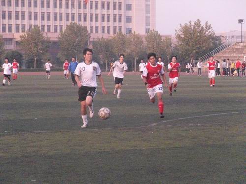 精彩的拉拉队表演后,两队回到赛场上继续拼搏。队员们士气高涨,场面进入白热化。一攻一守之间,队员们游刃有余。没过多久,经济与管理系踢进一球,将比分扳平。两队争夺更为激烈,两队相持之时,经管系队员又进一球,赢得满场喝彩。比赛也在这种激昂的气氛中迅速结束。经管系最终以2:1领先一分的成绩赢得整场比赛。