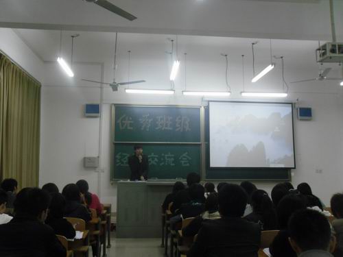 为对大一各班干进行“优秀班级申请”的培训,我系于11月3日晚上七点在教学楼2-209召开了 “优秀班级经验交流大会”。