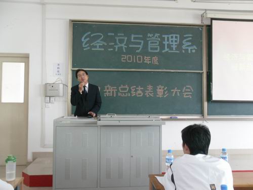 9月29日中午12:30我系于1-301教室举行了2010年度迎新总结表彰大会。党总支胡水兵书记、党总支秘书毛峥毅老师、团总支候亮荣书记、学工办张平主任以及我系各辅导员莅临会场。团总支副书记何江老师担任此次大会主持。
