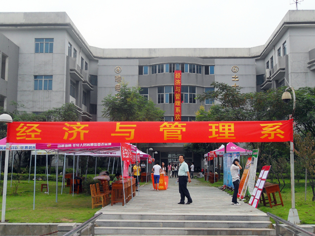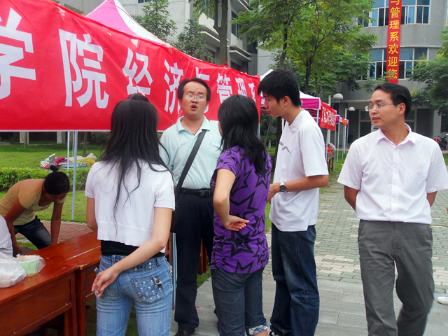 9月10日下午,我系迎接新生的工作已经全面开展,我系团学联全体成员在指定的位置搭好帐篷、摆好桌椅、贴好横幅、摆好宣传展板。经济与管理系学工办主任张平、党总支胡水兵书记、团总支侯亮荣书记亲临现场,统一指挥协调迎新工作,保证迎新前的准备工作有条不紊的进行。