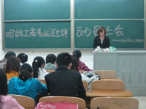 省级迎评工作在即,我校领导积极动员,08级工商专业学生积极响应省级专业评估。4月26日19:00在2教308开展了08级工商专业迎评动员大会。班主任兼任工商教研室副主任潘连柏老师参加了此次动员大会。