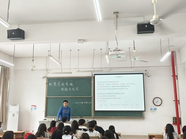 8:20分享会正式开始,首先由导师班主任陈雪梅老师介绍了此次与大家交流的六位在专业学习、科研竞赛、学生工作、考研上岸等不同领域取得突出成绩的大四学长学姐们,并介绍举行此次分享会的目的及流程。其次由李凯凯学长、范豪学长、肖钦华学长、熊鑫学长、杨丹学姐和吴灿学长依次同大家分享、交流他们的经验。