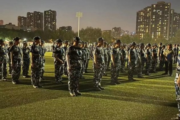 在军训中,高温酷暑给军训带来了困难,有的学生病倒了,凭借着顽强的意识,稍有好转,便坚持训练;有的学生带病也坚持训练。在部队教官亲切的关怀和严格的训练下,在短短的三天内,踏步走、站军姿、敬礼、蹲下以及分列式训练科目已初见成效。教官手把手教,学生认真的学。在军训列队中,方队整齐,精神饱满,步伐矫健,声音嘹亮。