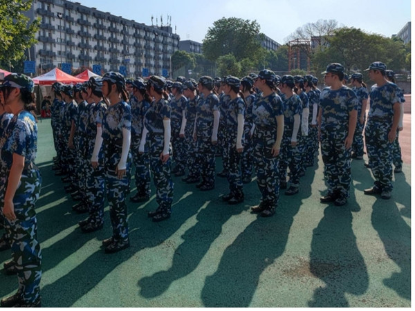面对灼人的烈日,感受燥热的风浪,汗水从额头、脸颊滑落。军训正如火如荼的进行着,各连方阵整齐划一。操场上,一排排迷彩列成队伍,口令声余音绕梁,经久不息。烈日当空,站军姿的新生们,无论多么炎热,多么难受,都在咬紧牙关坚持;练分列式的同学们,无论腰腿多么酸痛,手脚多么沉重,都始终不懈,用信念维持。商学院学生用信念体悟艰苦,用顽强证明精神。