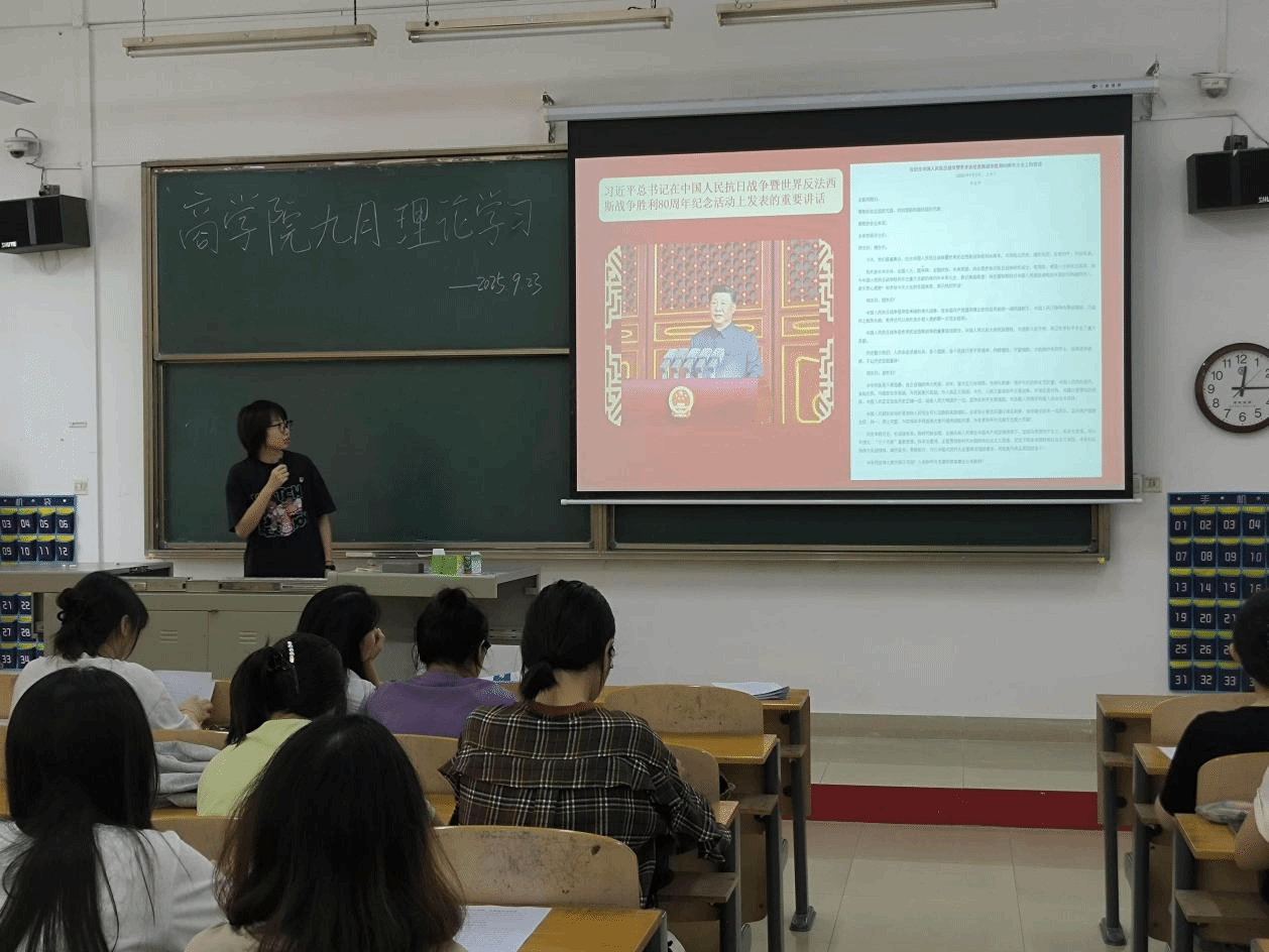 9月23日,商学院党员服务站于教学楼2教108教室开展“铭史承志忆峥嵘,弘魂奋进谱新篇”主题理论学习活动。此次活动旨在纪念中国人民抗日战争暨世界反法西斯战争胜利80周年,深化学生党员对伟大抗战精神的深刻理解和大力弘扬,将伟大抗战精神转化为实际行动。