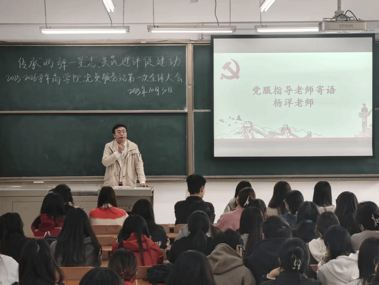 大会伊始,杨洋以“小事情,大事情”为核心,明确党员与服务站的行动方向。对于党员,无论是日常帮扶同学的“小事”,还是参与迎评促建功的“大事”,都需以高标准践行责任,在服务中锤炼初心;对于党员服务站,要搭建好实践平台,让每位成员都能在组织活动、解决问题中锻炼能力,实现个人成长与组织发展同频共振。当前学校迎评工作进入关键期,杨洋同志特别强调,此次“大考”与每一位同学息息相关。他呼吁全体成员牢记“脚下有泥土,心中有信仰;眼里有同学,心上有责任”的要求,以务实行动投入评估准备,确保各项检查工作落地见效。