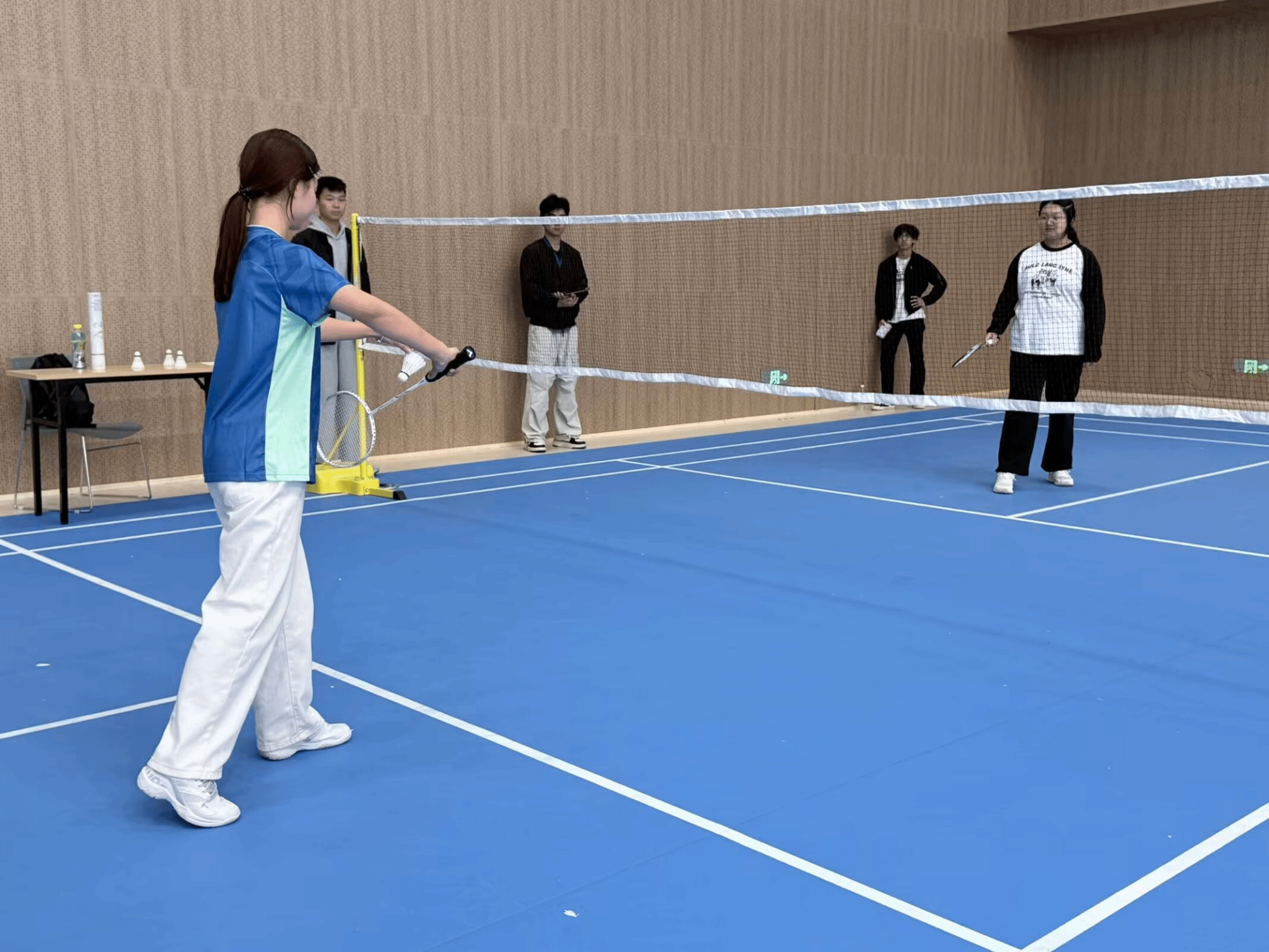 比赛分为男子选拔赛和女子选拔赛。现场气氛热烈,欢呼声与球拍击球的清脆声响交织成青春的赞歌。在裁判的哨声示意下,选手们迅速进入状态,发球精准凌厉,接球反应敏捷,羽毛球在球网两端飞速穿梭,划出一道道优美的弧线。选手们身姿矫健、斗志昂扬,时而跃起扣杀展现力量之美,时而网前轻吊尽显灵动技巧,每一个回合都扣人心弦。比赛正如火如荼地进行着,选手们的攻防转换行云流水,每一次大力扣杀都引发全场惊呼双打赛场。现场的气氛越来越紧张,比赛也来到了最后关头。选手们攻势更猛、斗志更盛,双方的比分交替上升,即便体力透支,也始终保持着昂扬的姿态,用不服输的韧劲坚守到最后一刻。最后一记精彩扣杀落地,选手以巧妙的技巧赢得了这场比赛。