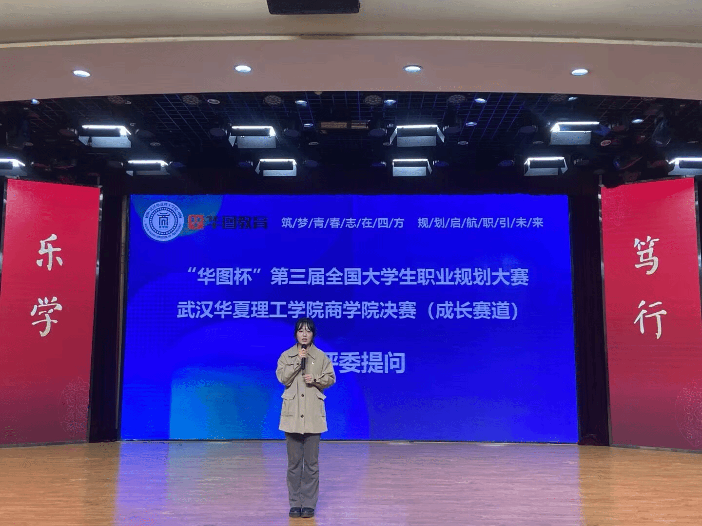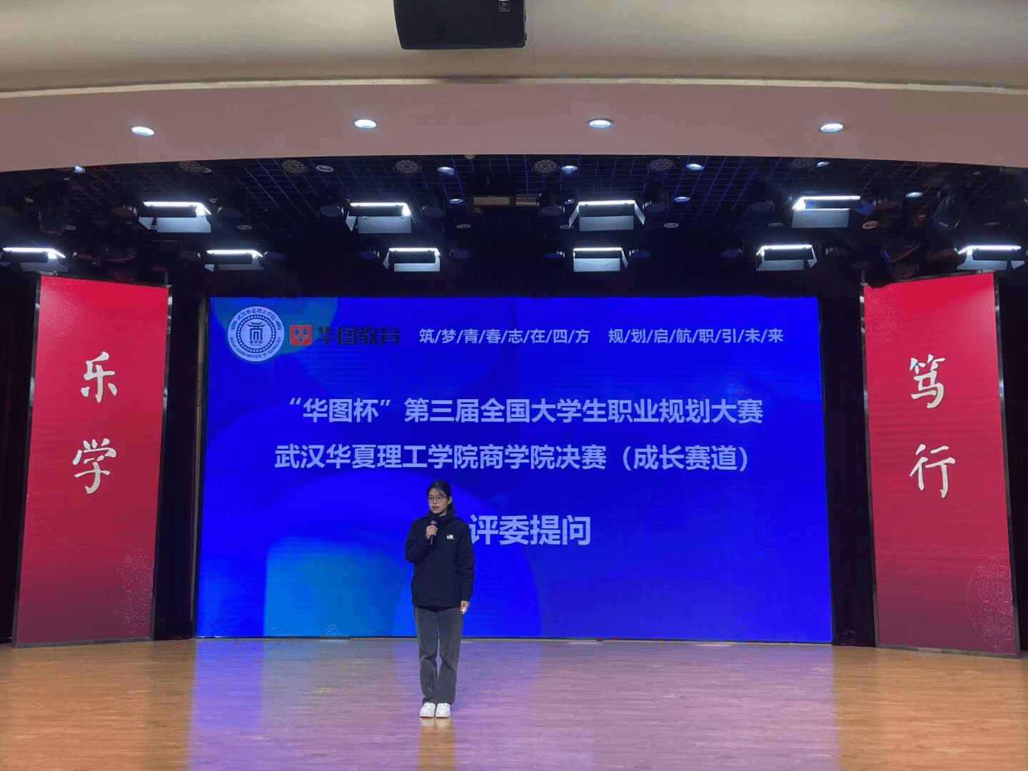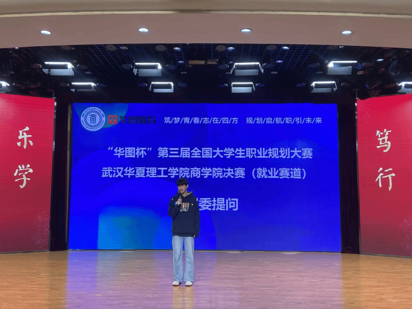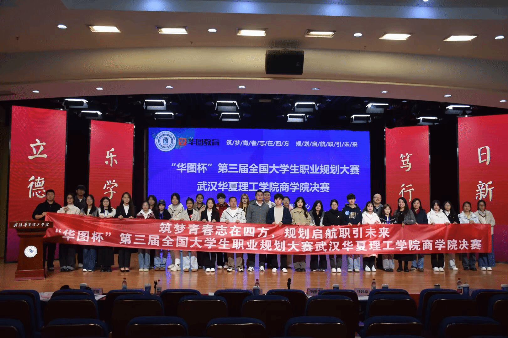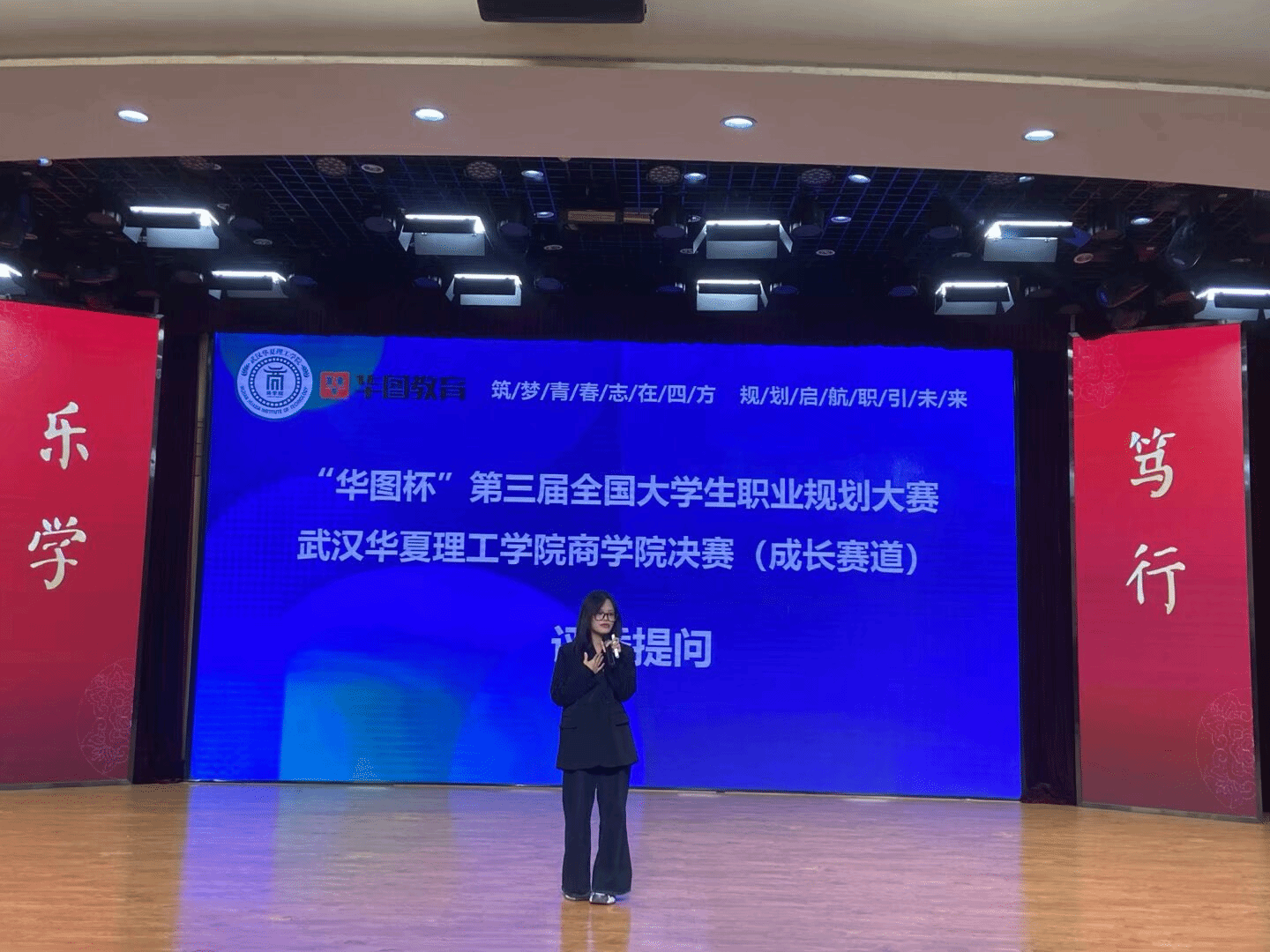为积极响应国家关于加强大学生职业发展与就业指导的号召,深入践行以学生成长为核心的育人理念,助力商学院学子明晰职业发展方向、夯实职场核心能力、搭建校园与职场的有序衔接。武汉华夏理工学院商学院华图杯第三届全国大学生职业规划大赛院级决赛于11月20日中午12:15在光谷校区学术报告厅隆重举办。本次大赛特邀多位行业专家与校内教师共同担任评委,包括华图教育科技有限公司结构化面试教研负责人陈元泽、猿辅导湖北公司HRBP经理汪越华、学生就业创业指导服务中心副主任刘继平、商学院学工办主任刘浩波、商学院党总支组织员杨洋、财会系副主任徐玄玄、国贸与金融系副主任谭瑛、商学院团总支副书记张倩倩等嘉宾出席。