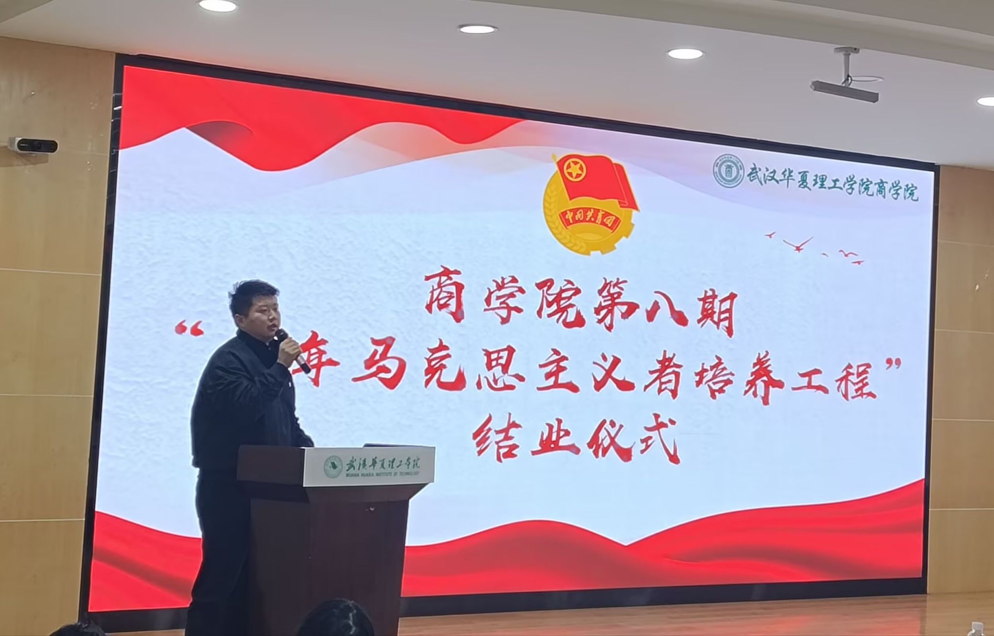 随后由商学院团总支书记致结业词,他的致辞温情有力,肯定了学员们的蜕变与成长,寄语大家“以理论为基筑牢信仰,以实践为翼勇担使命”,鼓励大家将马克思主义精神融入日常,在校园建设与社会服务中勇当先锋。