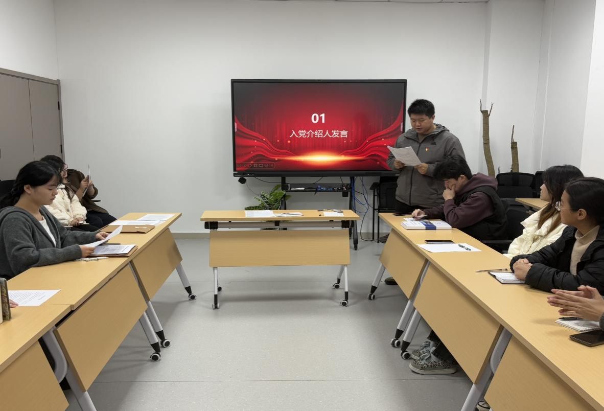 为严格党员发展程序,进一步增强党组织的凝聚力和战斗力,2025年12月19日,商学院学生第一党支部在综合楼XG12会议室召开预备党员转正大会。会议旨在讨论洪茹燕、桂易、袁晓非三位同志的转正申请,全体党员同志参加会议,会议由商学院学生第一党支部书记高颖主持。